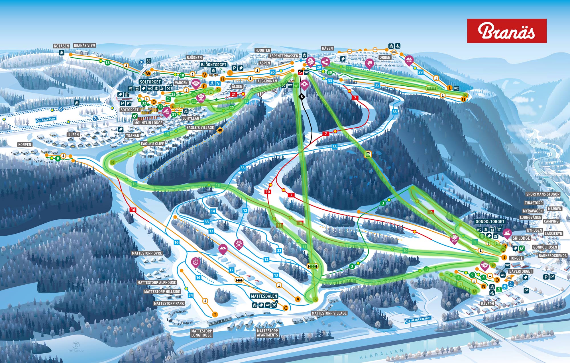 Liftar: Motvinden, Amundsliften, Toppexpressen, Kotten, Loliften 1, Istappen, Björnbusan, Gondolliften, Sjöexpressen
